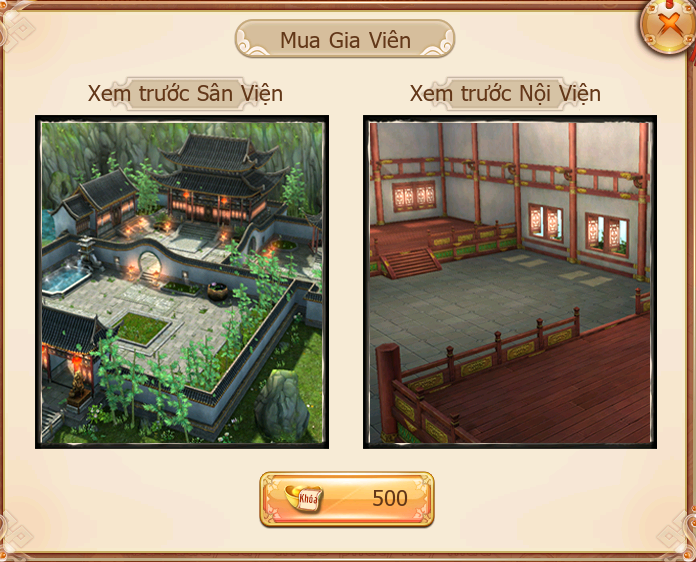 Người chơi mua gia viên với giá 500 vàng