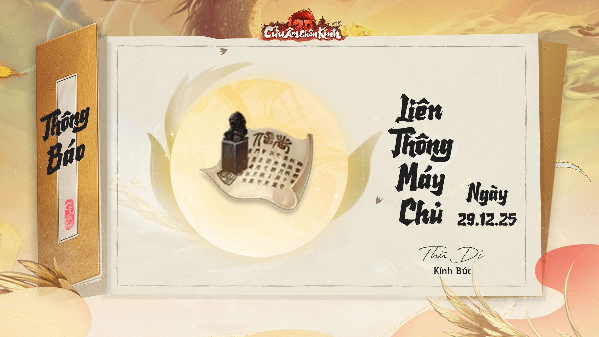 Hành tẩu trong giang hồ rộng lớn. Có phải các Nhân Sĩ luôn muốn tìm cho mình một đối thủ xứng tầm để quyết chiến so tài kỹ năng, hay là tìm cho mình được cho mình những bằng hữu mới, một mối lương duyên tốt trong thế giới Cửu Âm? Chính vì hiểu những mong muốn đó, Thù Di xin thông báo về việc liên thông máy chủ trong ngày 29/12/2025. Cụ thể như sau: